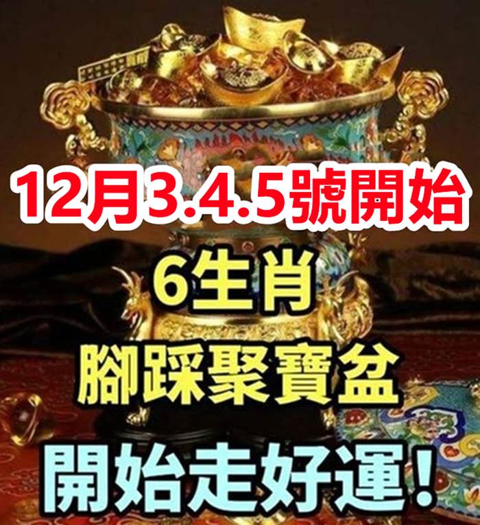 12月3.4.5號開始,6生肖腳踩聚寶盆,開始走好運!