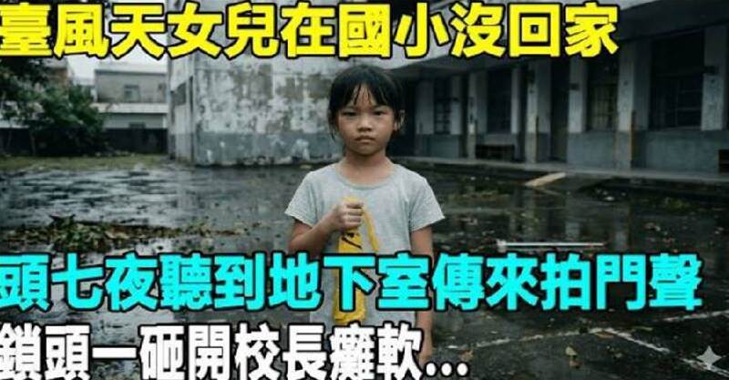 臺風天女兒在國小沒回家,老師堅持人早走了,頭七夜裏警衛聽到地下室傳來拍門聲,鎖頭一砸開校長癱軟