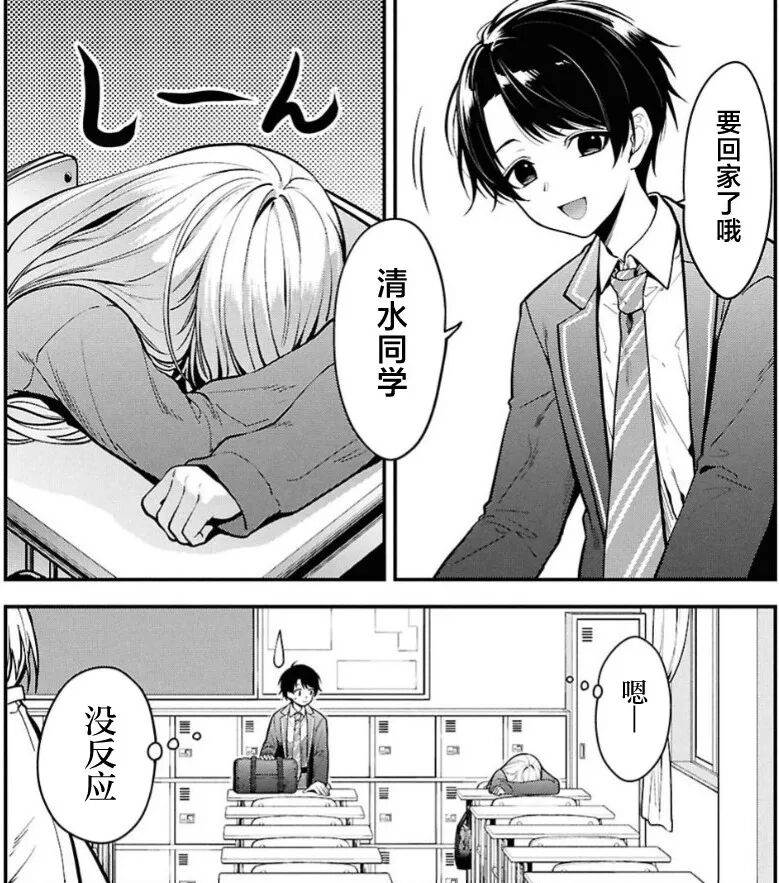 男主角本堂大輝是個普通的高中生,由于為人比較低調,平時在學校的朋友并不多。他的鄰座名叫清水圭,是個顏值很高,但卻有些難以接近的妹子,再加上又染了頭髮的緣故,被周圍人視作不良少女。而男主也是班里唯一不疏遠她,并愿意主動搭話的人。清水同學看似總給人一種高冷的印象,實際上膽小又內向,同時一出場就對鄰座男主抱著喜歡的態度。