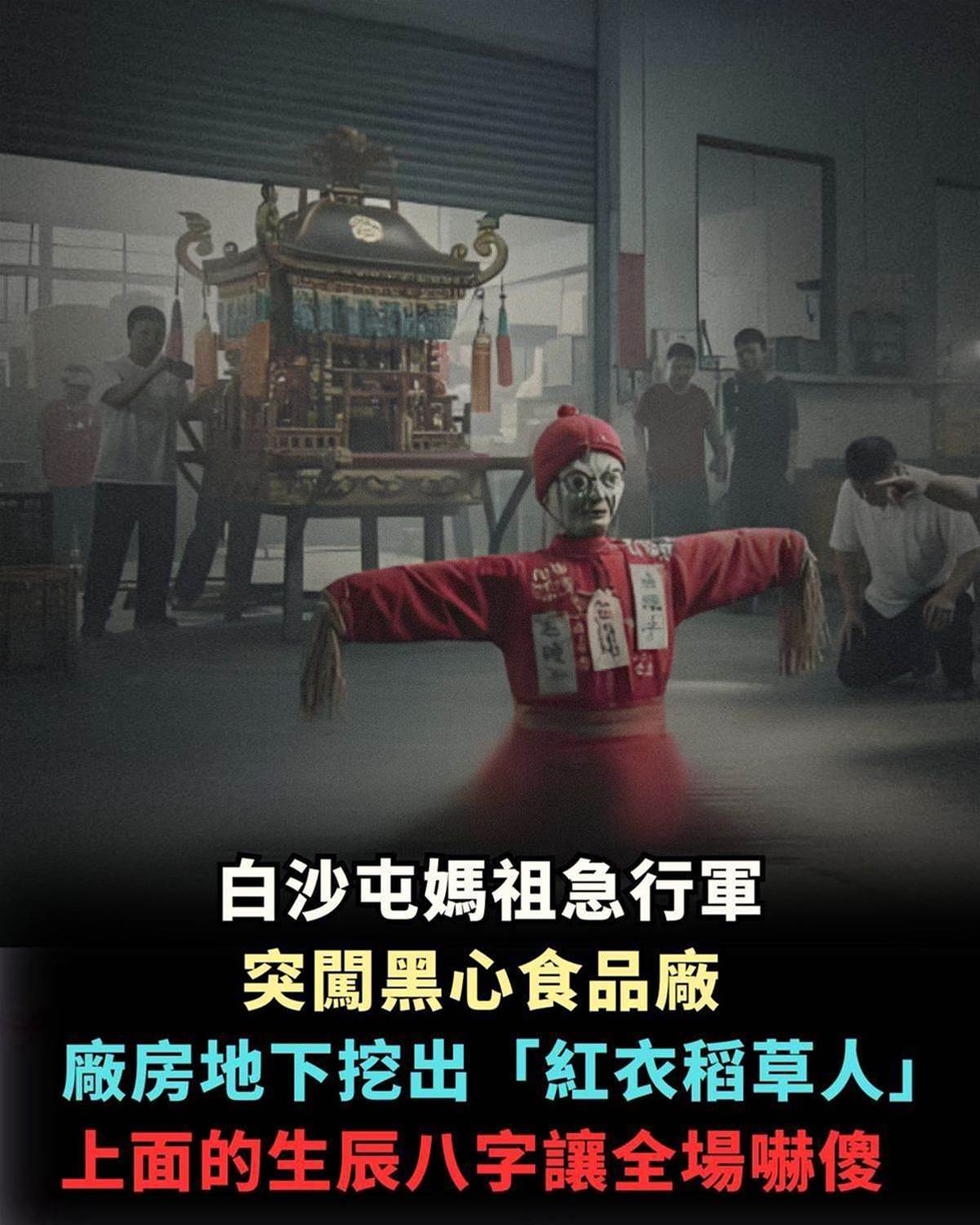白沙屯媽祖急行軍,突闖黑心食品廠,廠房地下挖出「紅衣稻草人」上面的生辰八字讓全場嚇傻