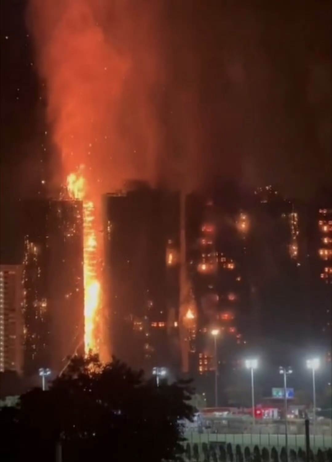 起火位置的竹棚未做任何防火處理,而其表層覆蓋的尼龍防風網屬高度易燃物,加上棚架與樓體僅 0.5 米的狹窄距離,形成天然「煙囪」,火舌快速沿外墻向上噴升。