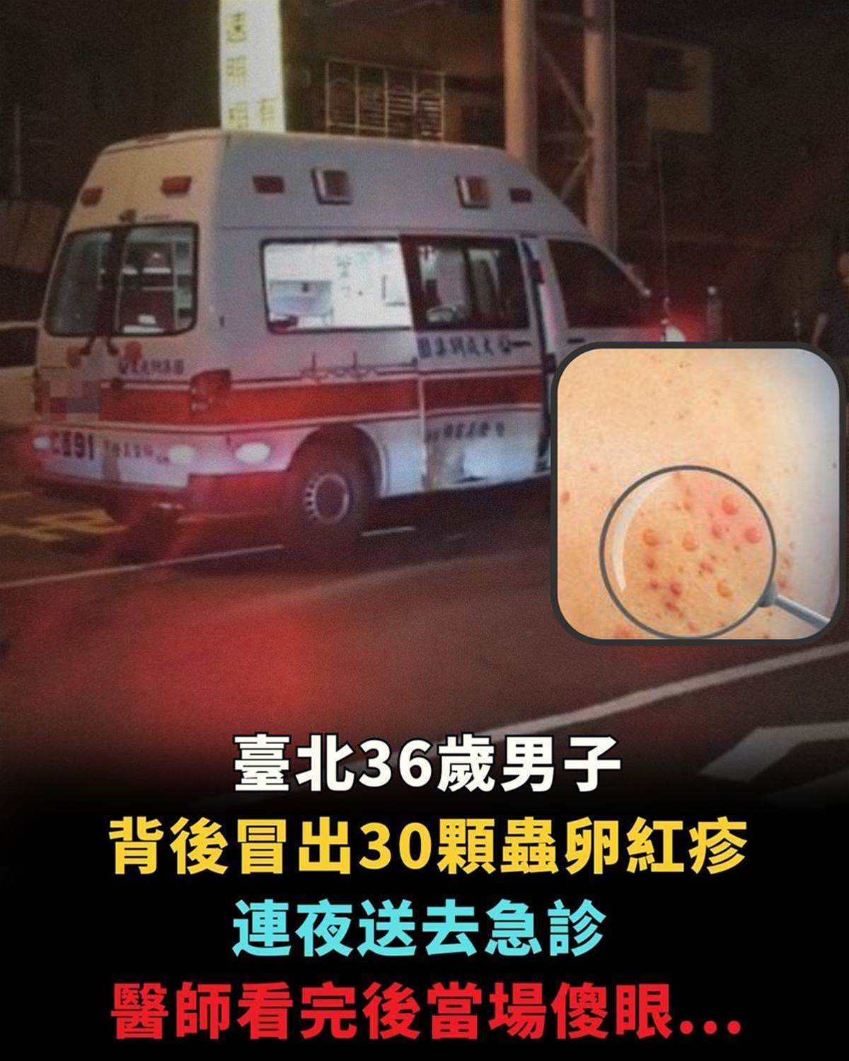 臺北36歲男子背後冒出30顆蟲卵紅疹,連夜送去急診,醫師看完後當場傻眼...