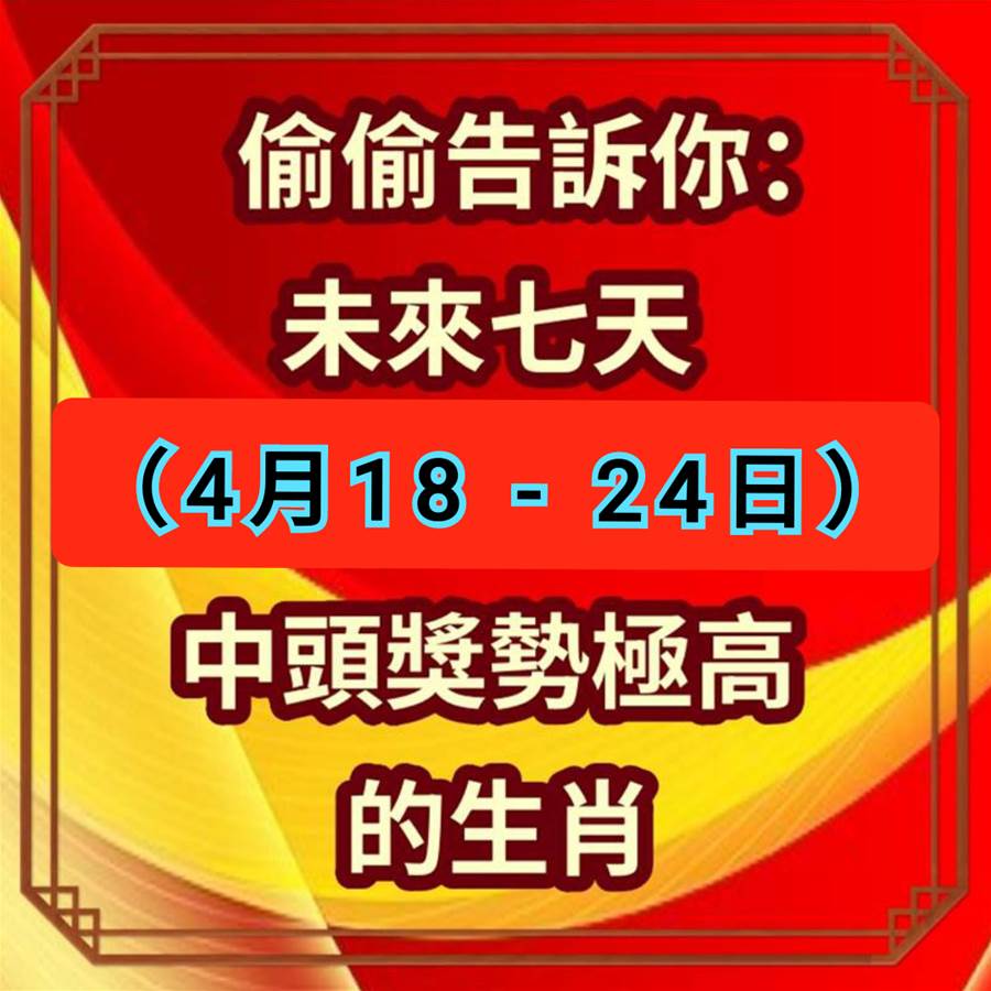 偷偷告訴你:未來七天( 4月18 - 24日 )中頭獎運勢極高的生肖
