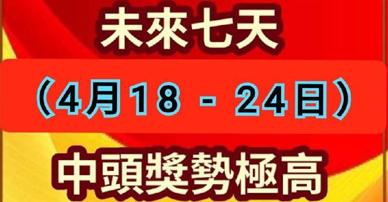 偷偷告訴你:未來七天( 4月18 ~24日 )中頭獎運勢極高的生肖