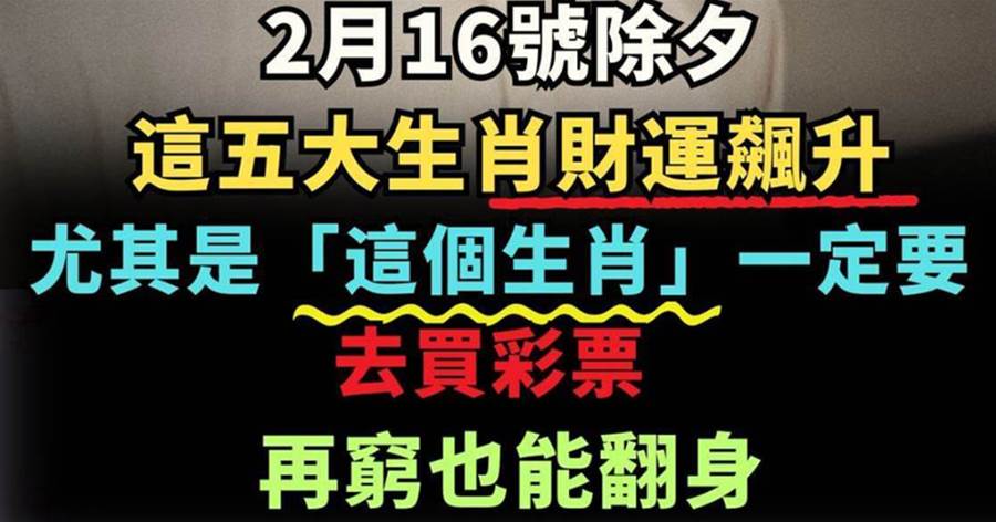 準的可怕!2月16號除夕,這五大生肖財運飆升,尤其是「這個生肖」,一定要去買彩票,再窮也能翻身
