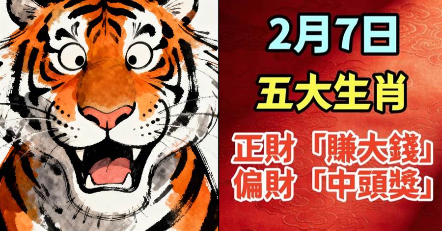 2月7日,五大生肖正財「賺大錢」,偏財「中頭獎」.