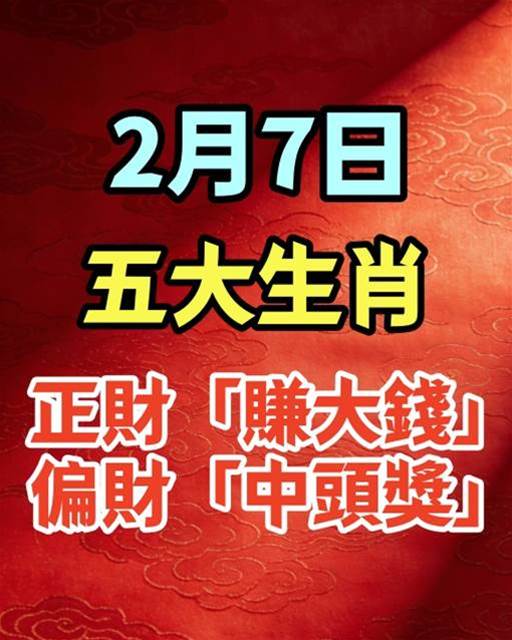 2月7號 有一筆 ( 意外之財 ) 的六個生肖