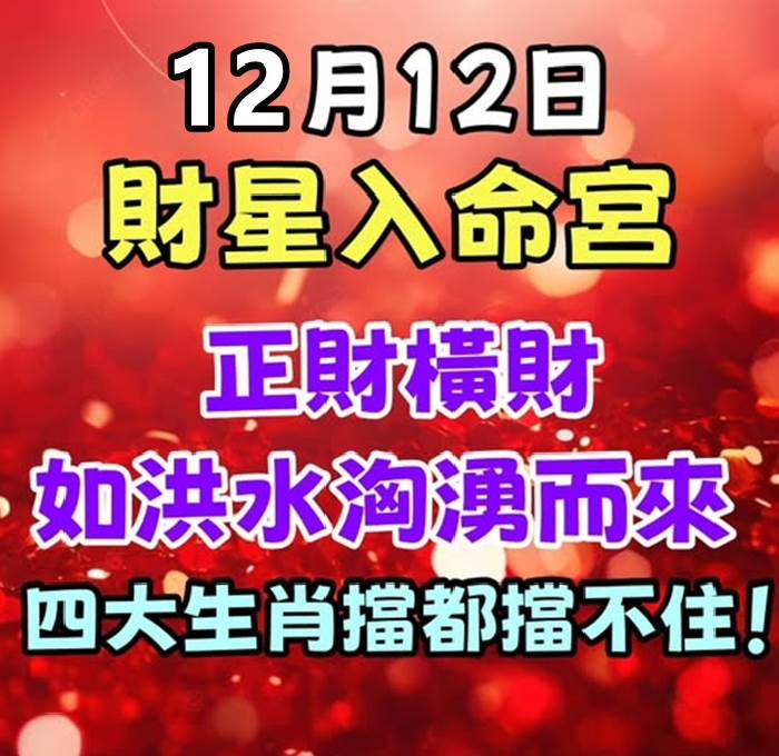12月11號: 四大生肖財富滔天 開掛的人生贏家