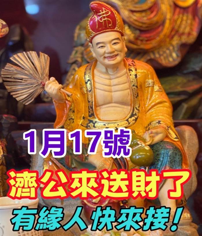 1月17號,這一天特別適合有緣之人把握機緣,因為濟公佛祖來送財了!這位佛教傳說中的濟公,素以慈悲為懷,喜歡幫助有緣人脫離困境,帶來好運與福氣。