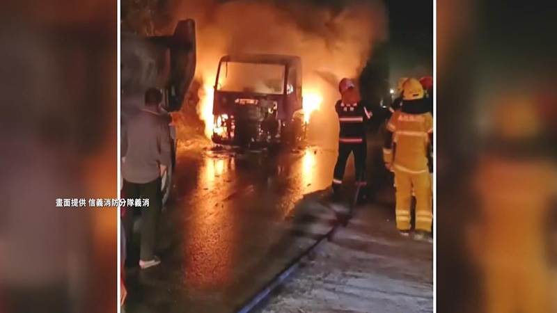 疑遭人縱火! 砂石車停堤防 車頭焦黑「剩骨架」