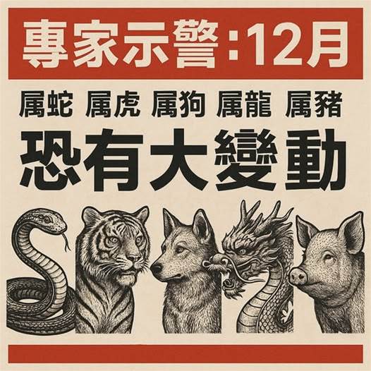 專家示警:12月「屬蛇 屬虎 屬狗 屬龍 屬豬」恐有大變動!