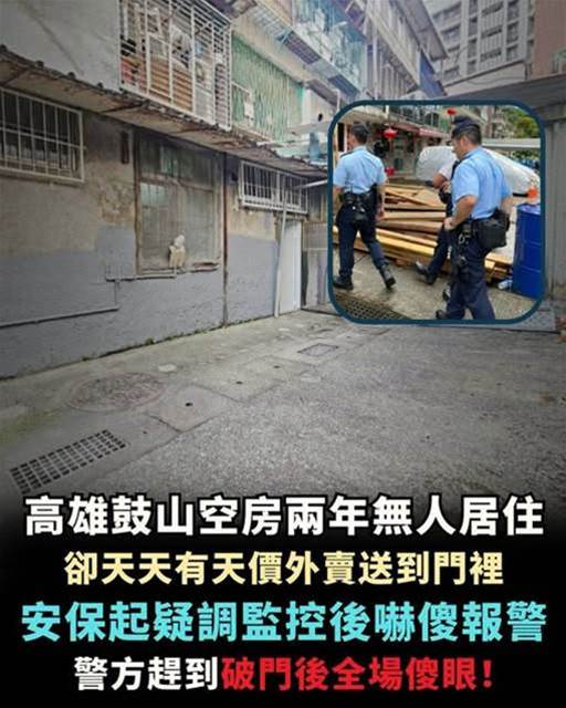 高雄鼓山空房兩年無人居住,卻天天有天價外賣送到門裡,安保起疑調監控瞬間報警,警方趕到破門後全場傻眼!