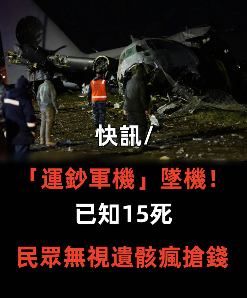 快訊/「運鈔軍機」墜機!已知15死 民眾無視遺骸瘋搶錢