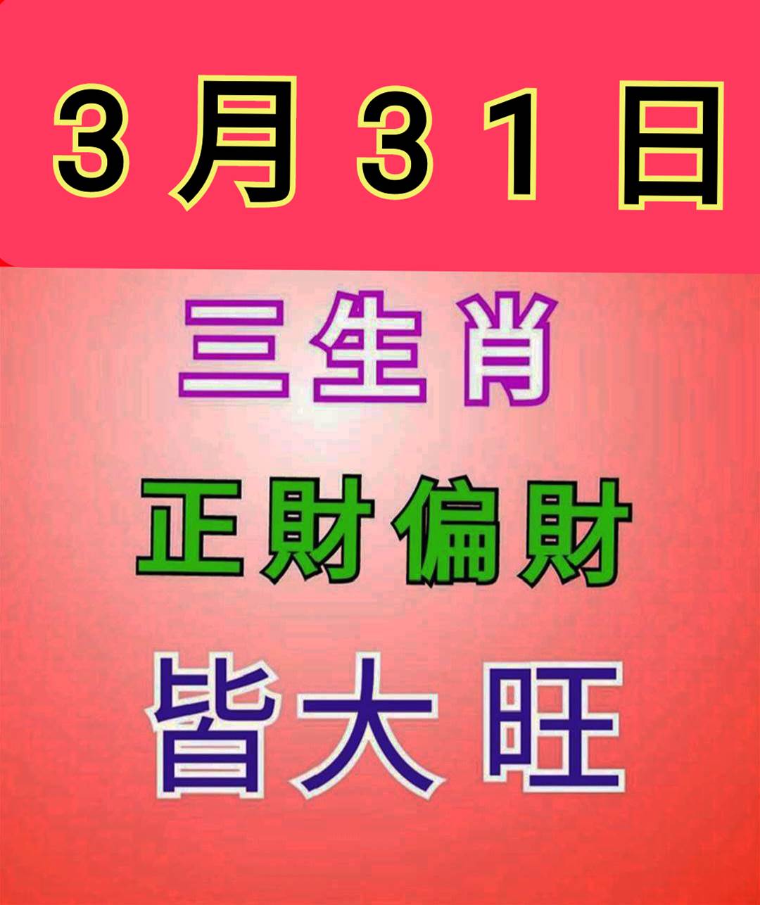 3月31日 三生肖 正財偏財「 皆大旺 」