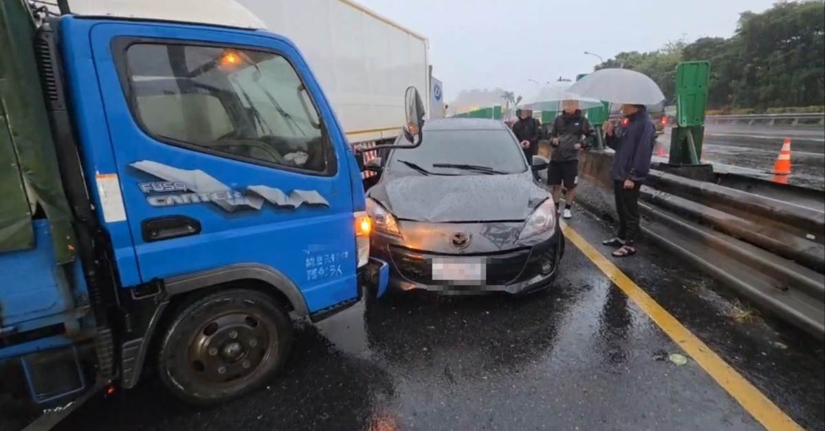 國道4車撞一團! 小貨車打滑 駕駛下車看遭撞飛輾斃