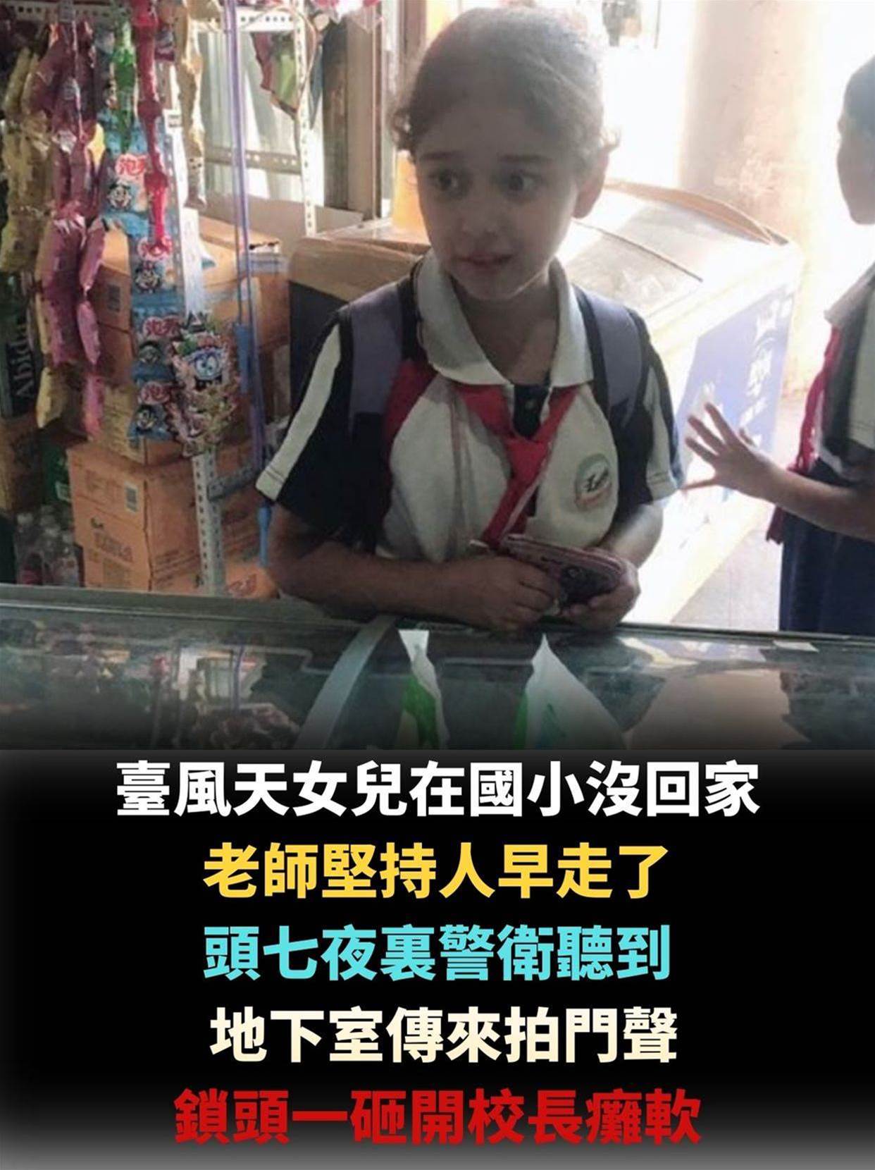 臺風天女兒在國小沒回家,老師堅持人早走了,頭七夜裏警衛聽到地下室傳來拍門聲,鎖頭一砸開校長癱軟