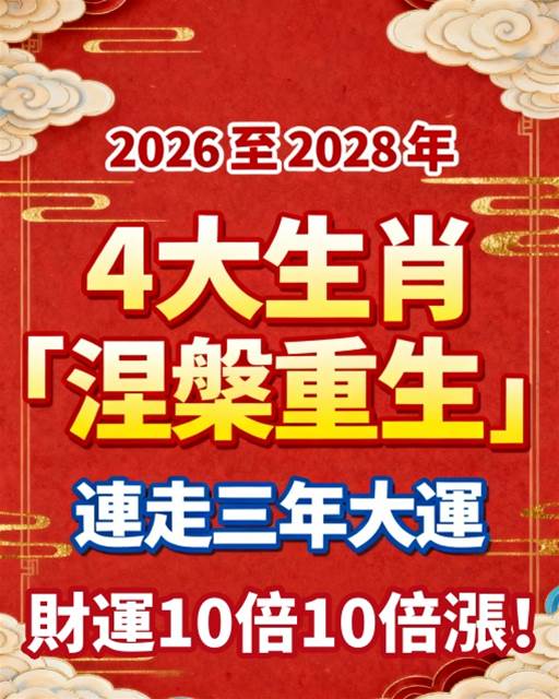 2026至2028年,4大生肖「涅槃重生」連走三年大運,財運10倍10倍漲!