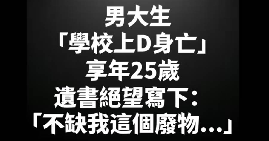 男大生「學校上D身亡」享年25歲,遺書絕望寫下:「不缺我這個廢物...」