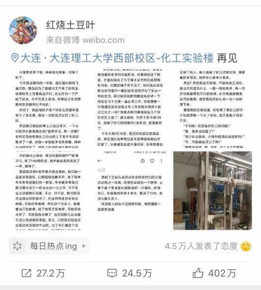 一位大連理工大學研三男同學在學校實驗室上吊身亡,享年25歲,他生前寫下一封長遺書,詳細描述他走上絕路的原因,而生動文字不難看出曾是熱愛生活的人,但一條麻繩,一句再見,終究還是離開了。