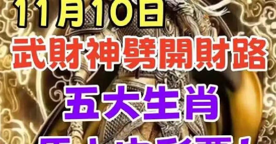 11月10日,武財神劈開財路,五大生肖馬上中彩票