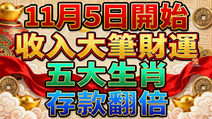 11月5日開始收入大筆財運,五大生肖存款翻倍