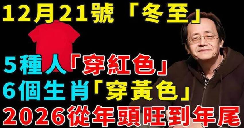 12月21號「冬至」,6個生肖「穿黃色」,5種人「穿紅色」,2026從年頭旺到年尾!