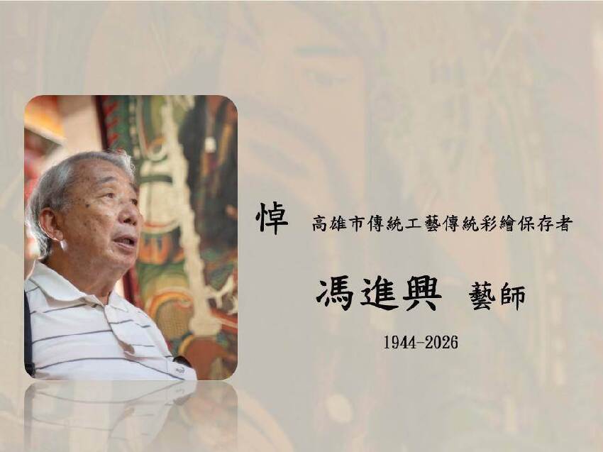 「台灣國寶」彩繪藝師馮進興辭世,享壽83歲,悲訊傳出,震驚外界!對此,文化部證實,並將頒發旌揚狀予以表彰。