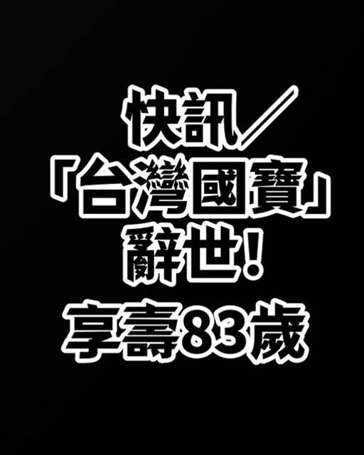快訊/「台灣國寶」辭世! 享壽83歲,悲訊傳出,震驚外界!
