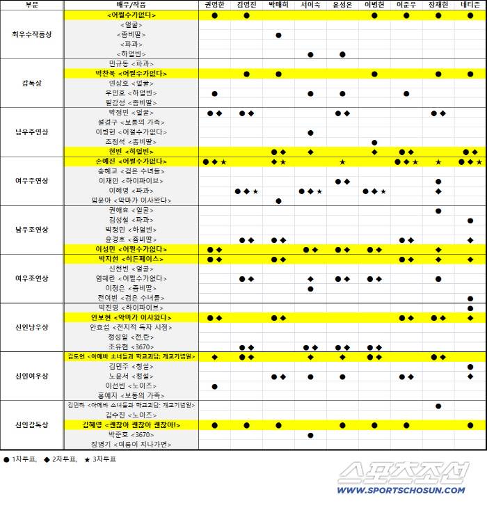 與男主角情況不同的是,孫藝珍即使剔除人氣票,她仍然是專業評委心中的熱門候補。在第一輪中,她的2張純評委票就幾乎與李慧英的3票持平,加上其在業內與觀眾的認可度,她穩居影后熱門人選幾乎無懸念。換言之,人氣票雖為她錦上添花,但并非決定性因素——孫藝珍的勝出,在很大程度上依然反映了她在專業評委心目中的實力與口碑。