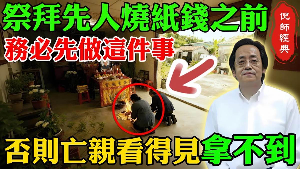 每年祭祖掃墓,你滿心誠意地焚燒大把紙錢,以為能讓九泉之下的親人過上好日子。但你知道嗎?根據命理大師倪海廈的經典論述,超過九成的民眾都漏了關鍵步驟,導致紙錢成了陽間的灰燼,陰間的廢紙。先人看得見卻拿不到,只能空嘆氣。這件事你做錯了嗎?