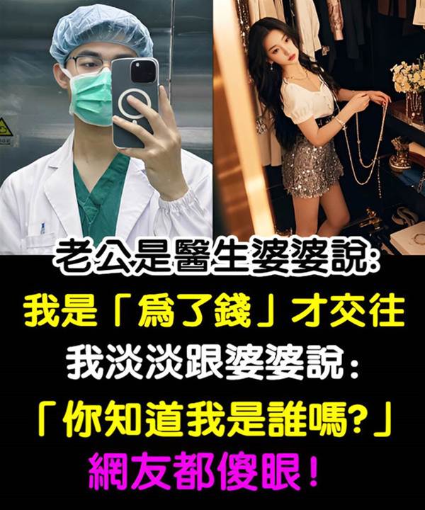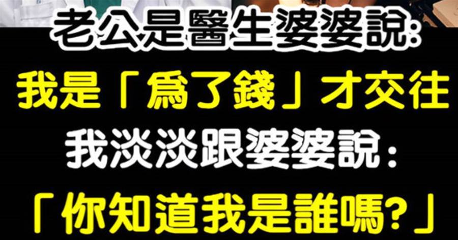 老公是醫生,婆婆說我是「為了錢」才交往!我淡淡跟婆婆說:「你知道我是誰嗎」網友都傻眼