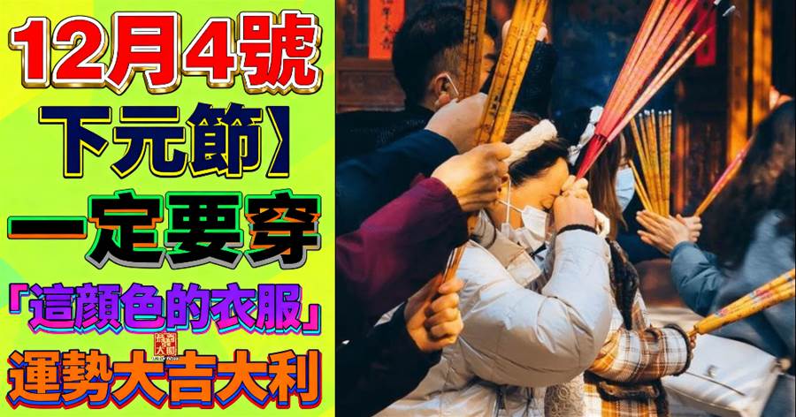 12月4號【下元節】一定要穿「這顔色的衣服」 運勢大吉大利,財運好運不斷