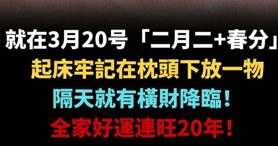 不是迷信!就在3月20號「二月二+春分」,起床牢記在枕頭下放一物,隔天就有橫財降臨!全家好運連旺20年!