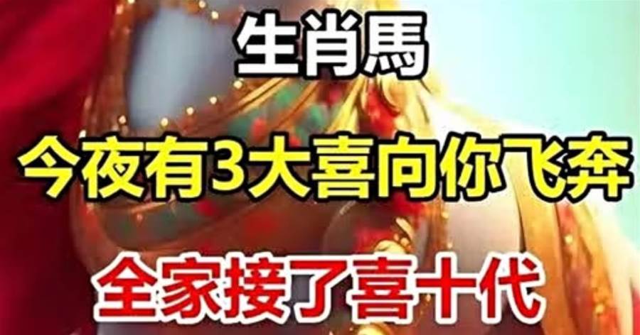 生肖馬:今夜有「3大喜」向你飛奔,全家接了喜十代