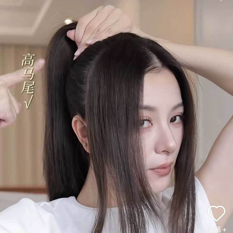 想讓馬尾有乾淨俐落感,第一步就是把後區頭髮抓起來往上綁,位置盡量高一點,這樣臉型會被拉得更修長,看起來自然變小。