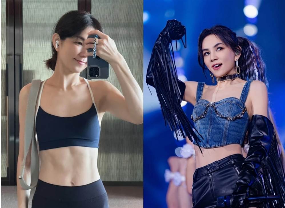回顧 Ella 的身材變化,出道初期臉上還帶點嬰兒肥,隨著結婚生子,年過40後的她反而更纖瘦、也練出更精實的體態。