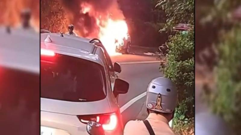整輛車燒得焦黑,車頭幾乎全毀,連座椅都被燒到只剩骨架。事發在 11 號下午 5 點半,三名男高中生與一名女高中生相約前往北海岸野柳遊玩,沒想到在回程途中,車輛突然冒煙,眾人趕緊停車逃生,沒多久車輛便陷入火海。