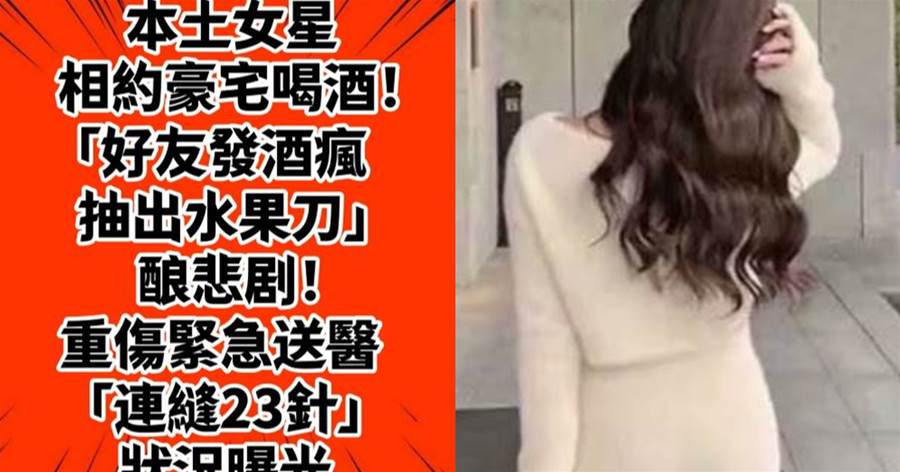 本土女星相約豪宅喝酒!「好友發酒瘋抽出水果刀」釀悲劇!重傷緊急送醫「連縫23針」狀況曝光