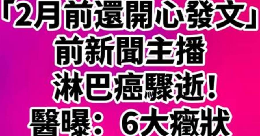 「2月前還開心發文」前新聞主播淋巴癌驟逝!醫曝:6大癥狀「這點最關鍵」快檢查