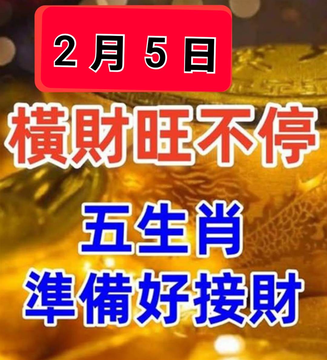 2月5日 橫財旺不停 五大生肖 接財了