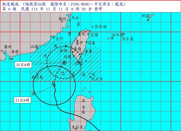 海上警戒部分則涵蓋台灣海峽、東南部海面、巴士海峽及東沙島周邊海域,航行船隻務必提高警覺。