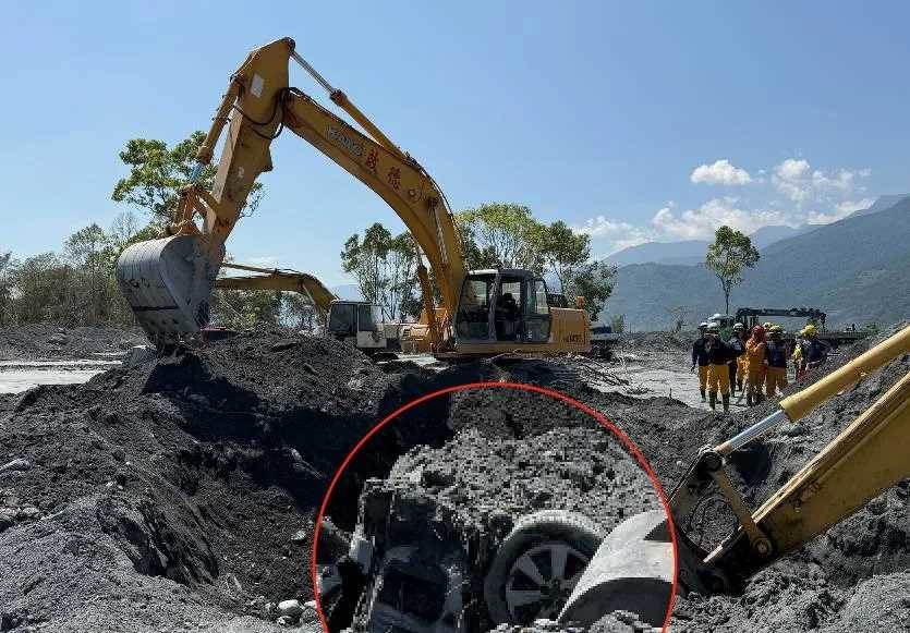 花蓮光復鄉遭堰塞湖溢流重創,地勢低窪的佛祖街更是重災區,其中1名砂石場黃姓老闆娘失聯多日,兒子多日來持續在砂石場守候,更掛起媽媽的衣服、苦苦期盼奇蹟出現。經過16天的挖掘,砂石場自家挖土機今(8日)終于發現遺體,連人帶車被深埋在2公尺深的砂土中,令親友哀痛不已。雖然結局令人遺憾,但如今家人終于能好好送祂最後一程,其中操作大型怪手、讓老闆娘能回家的幕後功臣,正是竹北「吊車大王」胡漢龑女婿。
