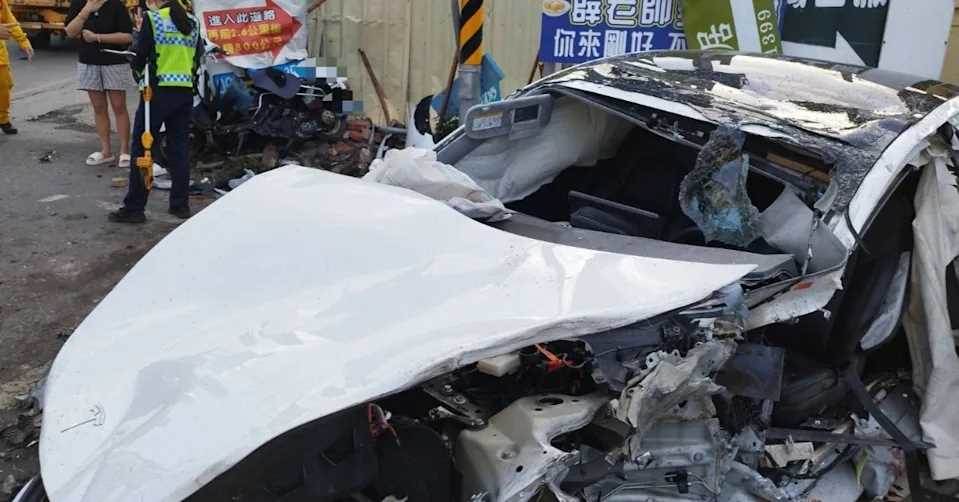 交通事故現場一片狼藉,機車被撞飛到路旁,特斯拉車頭嚴重受損。交通事故發生在6日下午4點左右,恆春分局第四組組長陳憲峰說,初步調查,26歲李姓男子駕駛租來的特斯拉載著妻子和一對雙胞胎兒女由北往南行駛,行經肇事路段,先追撞前方一輛水泥預拌車,