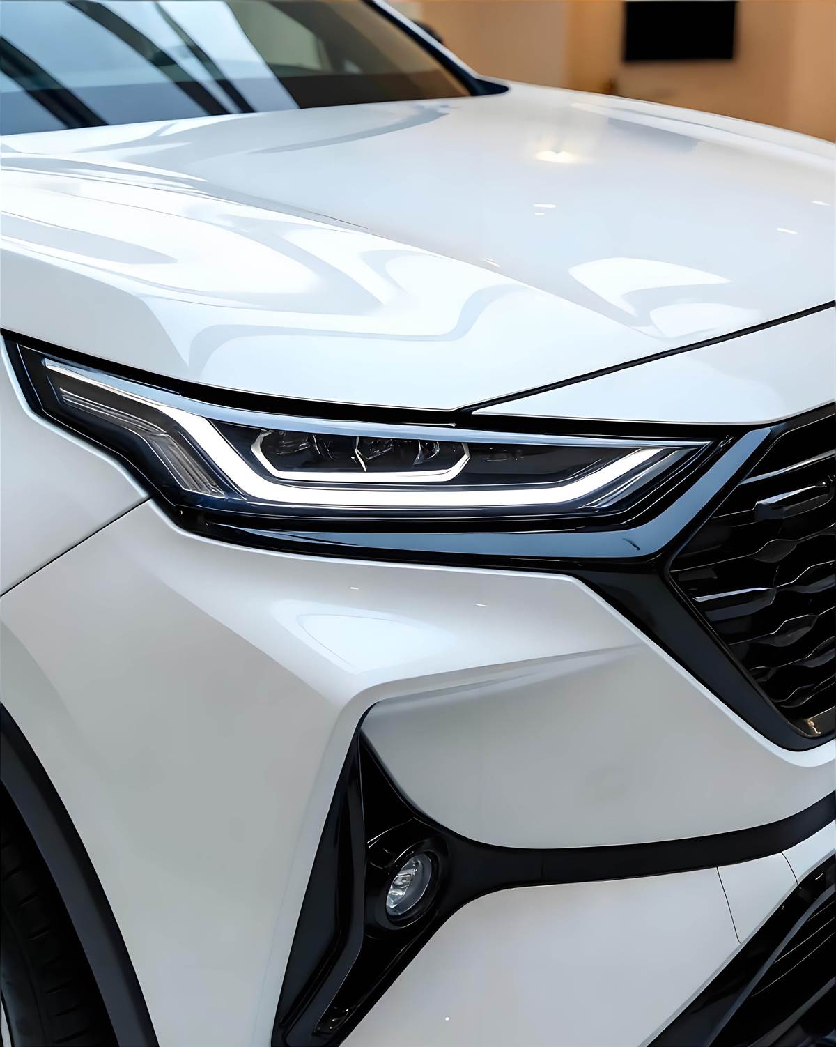 2026款Corolla Cross白刃版的外觀可謂是「運動化天花板」!車頭採用超大尺寸熏黑蜂巢狀進氣格柵,搭配銳利的LED頭燈組與運動化前唇,燈腔內加入鐳射式晝行燈,點亮後宛如利刃出鞘,攻擊性拉滿。前保險杠兩側設計立體導流槽,進一步強化空氣動力學效果。