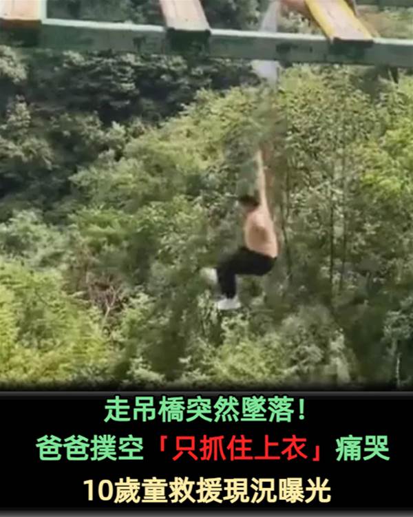 挑戰懸空吊橋!10歲童「安全繩脫落掉出」緊抓木板 爸爸救援失敗「只抓住上衣」親見兒墜谷痛哭