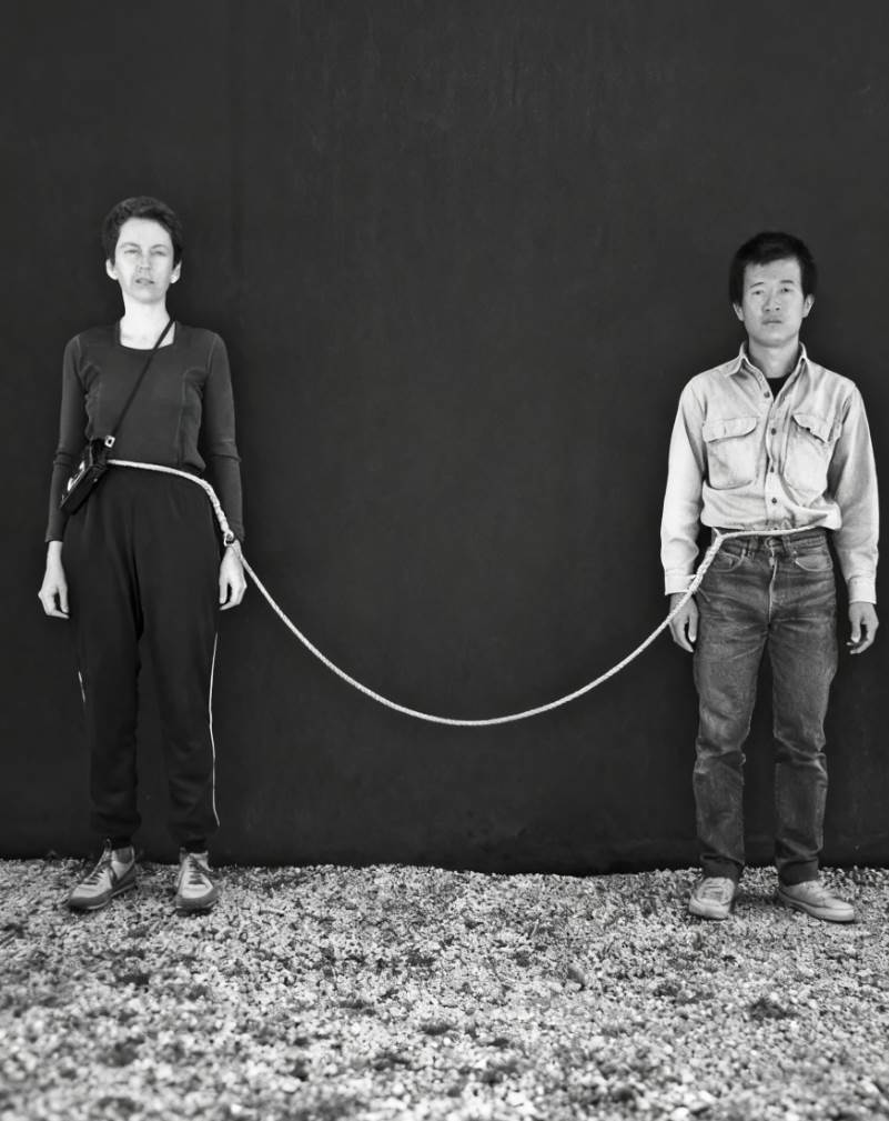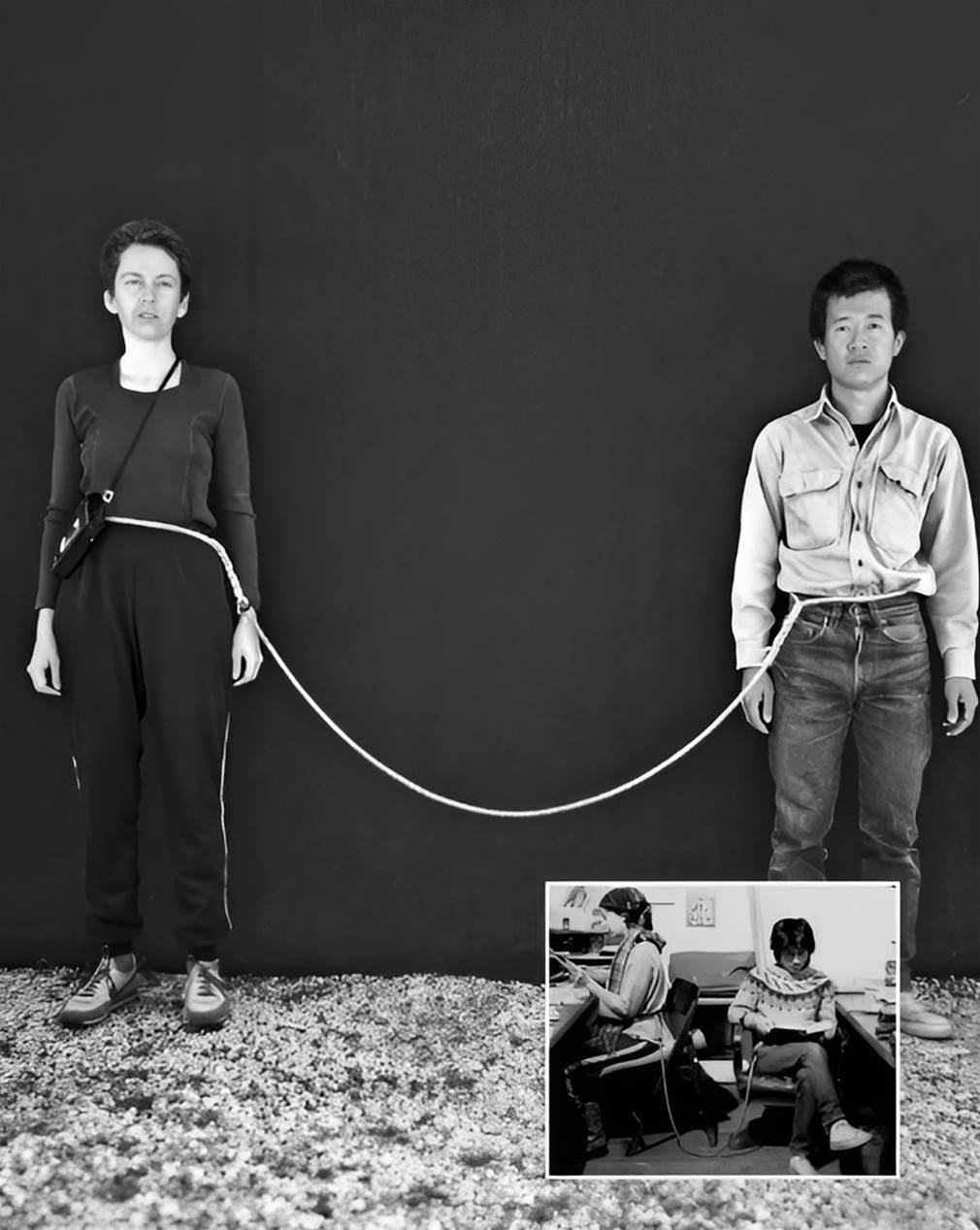 1983年7月4日,紐約街頭出現一對「連體人」——華人行為藝術家謝德慶與美國藝術家琳達·蒙塔諾,用一根2.4米長的繩子將彼此腰部相連,開始了長達一年的行為藝術《繩子》。