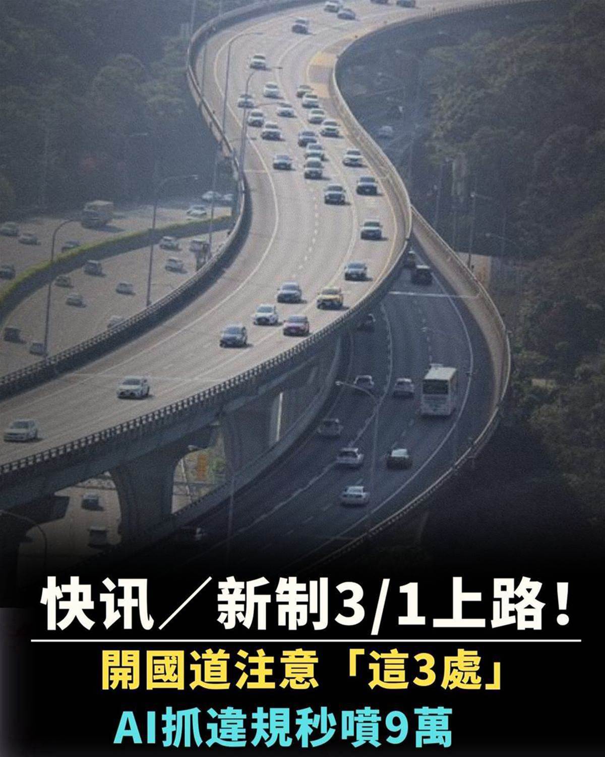 快訊/新制3/1上路!開國道注意「這3處」AI抓違規秒噴9萬