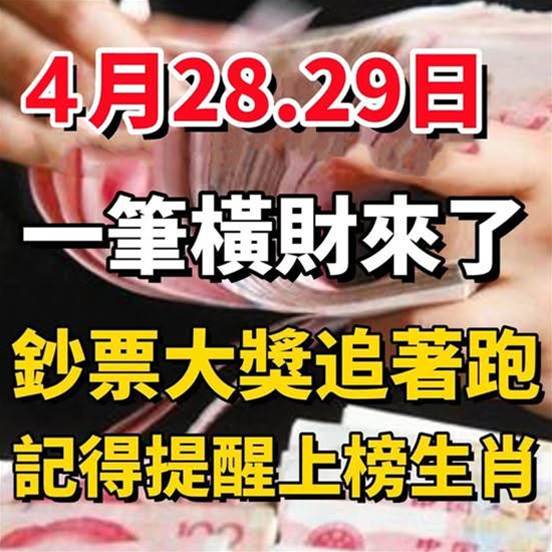 4月28.29日:一筆橫財來了,鈔票大獎追著跑,記得提醒上榜生肖!!