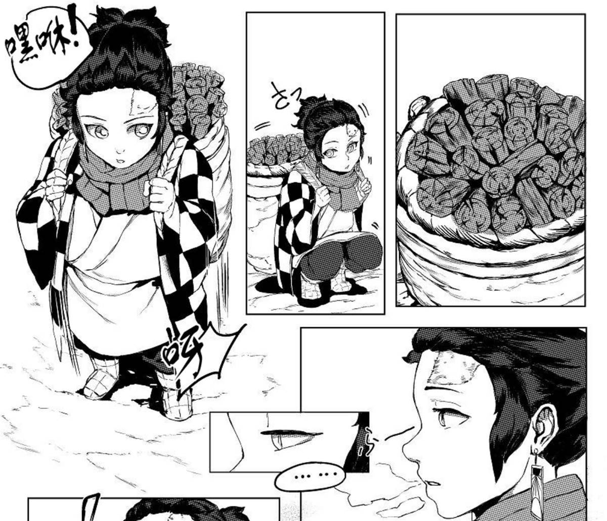 那是一個平靜的傍晚,夕陽余暉灑在灶門家的庭院。炭治郎結束了劈柴的活兒,正準備回屋喝點水,順道找母親說說明天去鎮上賣炭的事。屋內傳來低語聲,他以為是母親和禰豆子在聊天,便輕手輕腳走過去,想給她們一個驚喜。