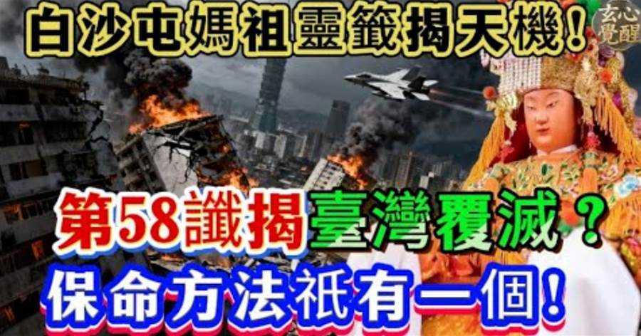 白沙屯媽祖震怒降籤!第58籤揭「台灣災劫」即將爆發,唯一保命方法曝光!